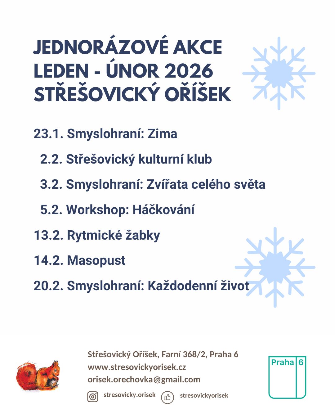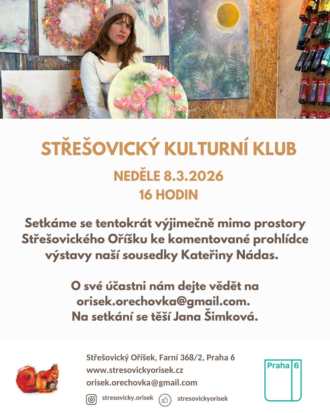 Střešovický kulturní klub proběhne tentokrát mimo prostory Střešovického Oříšku!